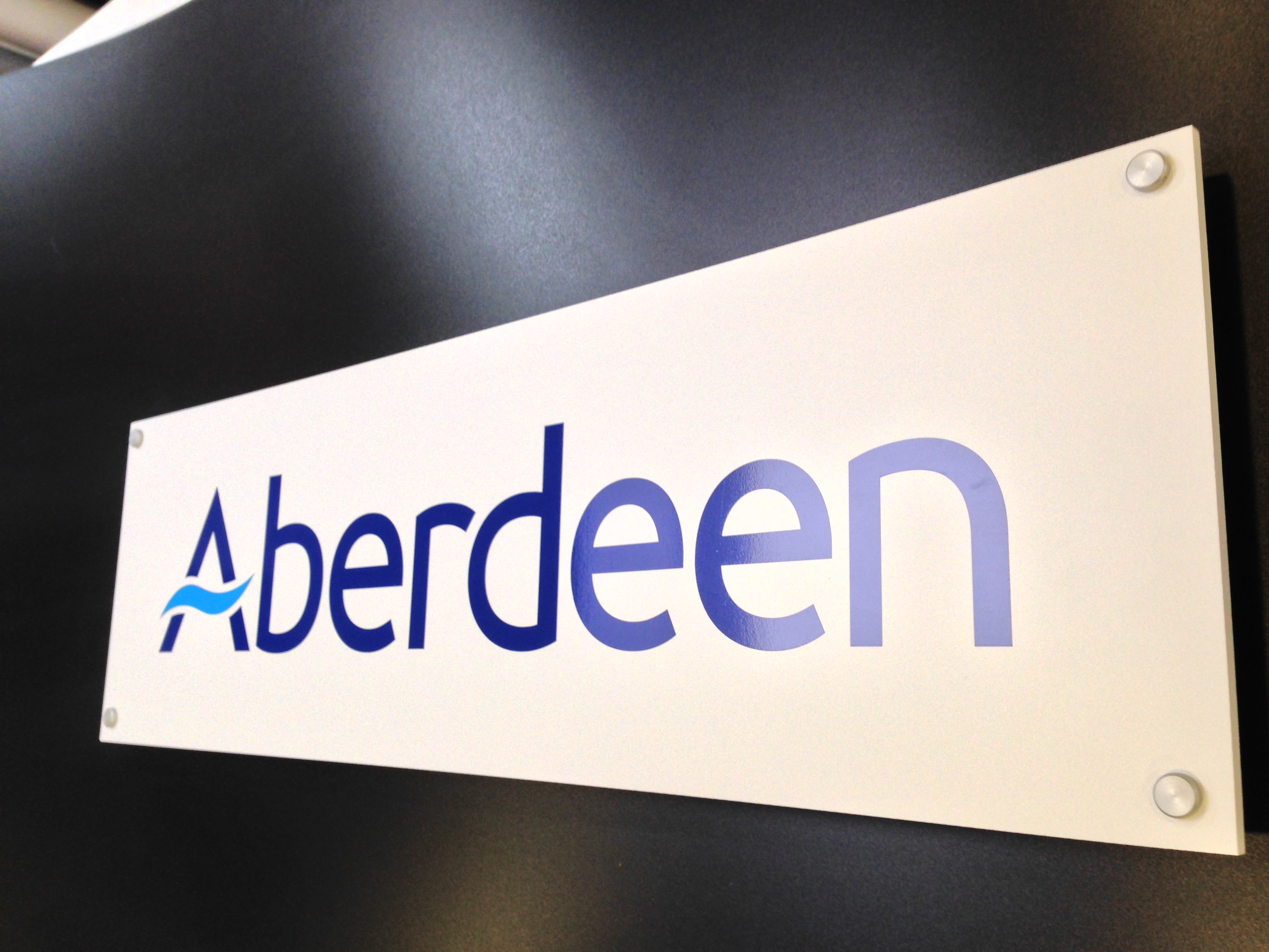 CorporateĀ logo is shown in reverse on these strips of window frosting filmĀ displayed across internal glass partition walls.Ā