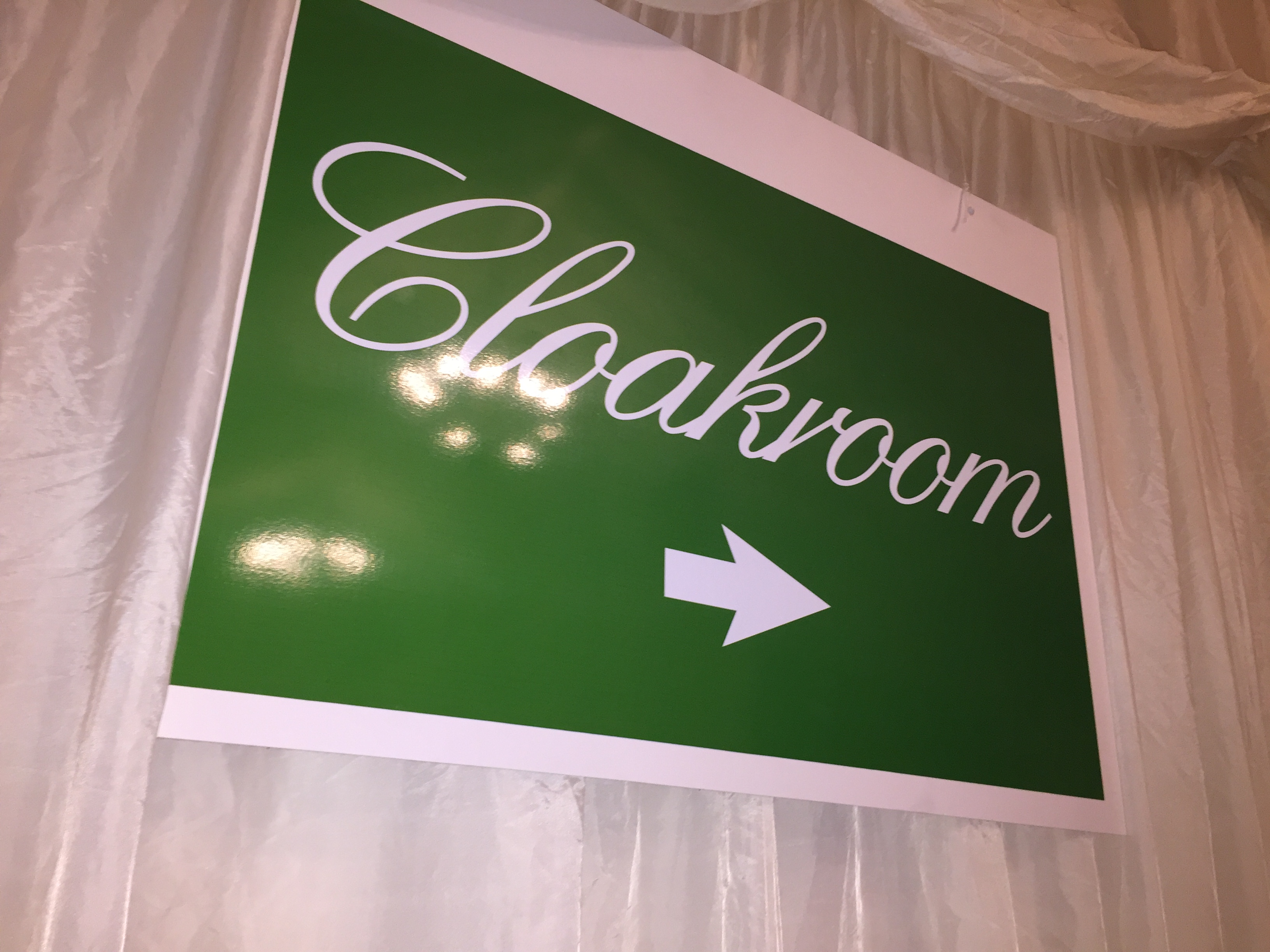 Cloakroom Sign Small cloakroom sign for corporate hospitality event. Hospitality Signs Share this sign