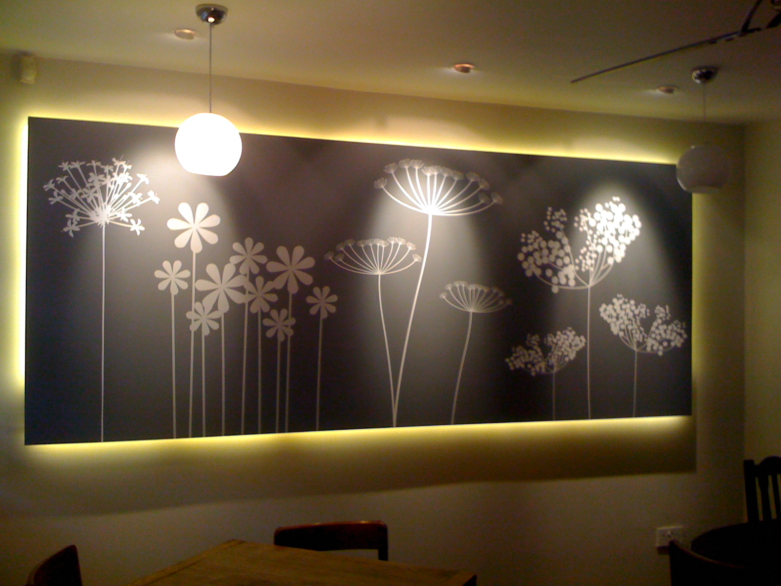 Coffee Shop Artwork Continuous pattern installed in London coffee shop, dramatically improving ambience from otherwise bare walls. Murals and wallpaperOffice Signs Share this sign
