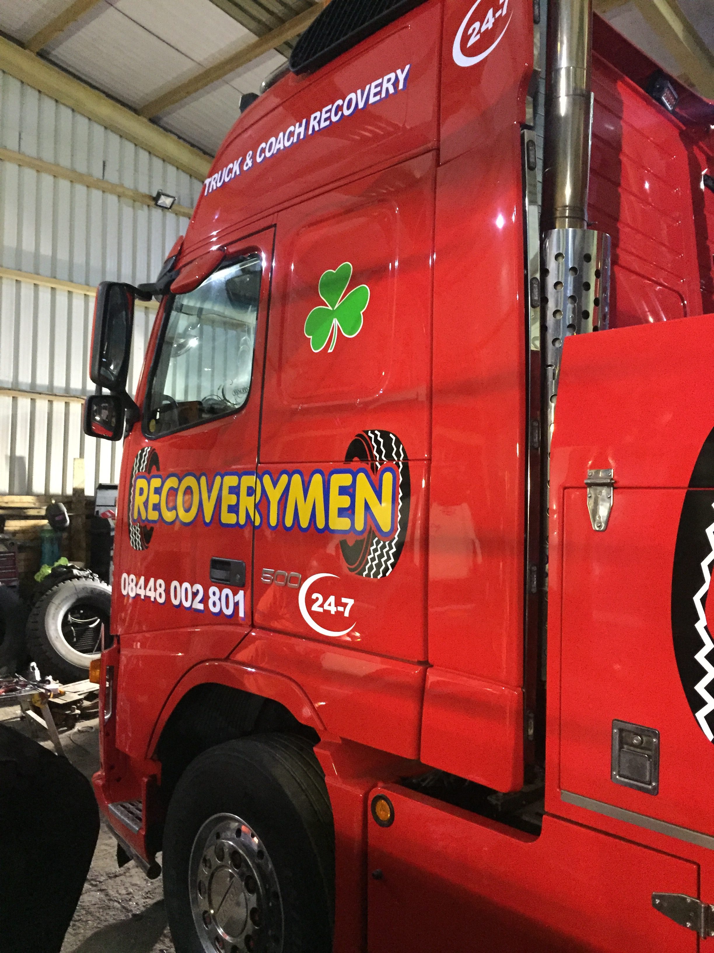 Recovery Vehicle for HGVs We can apply vehicle graphics to any vehicle bodywork, no matter the size or shape. More irregularly shaped vehicles are no problem, such as this HGV recovery vehicle. Plant and HaulageLorries and Commercial Vehicles Share this sign
